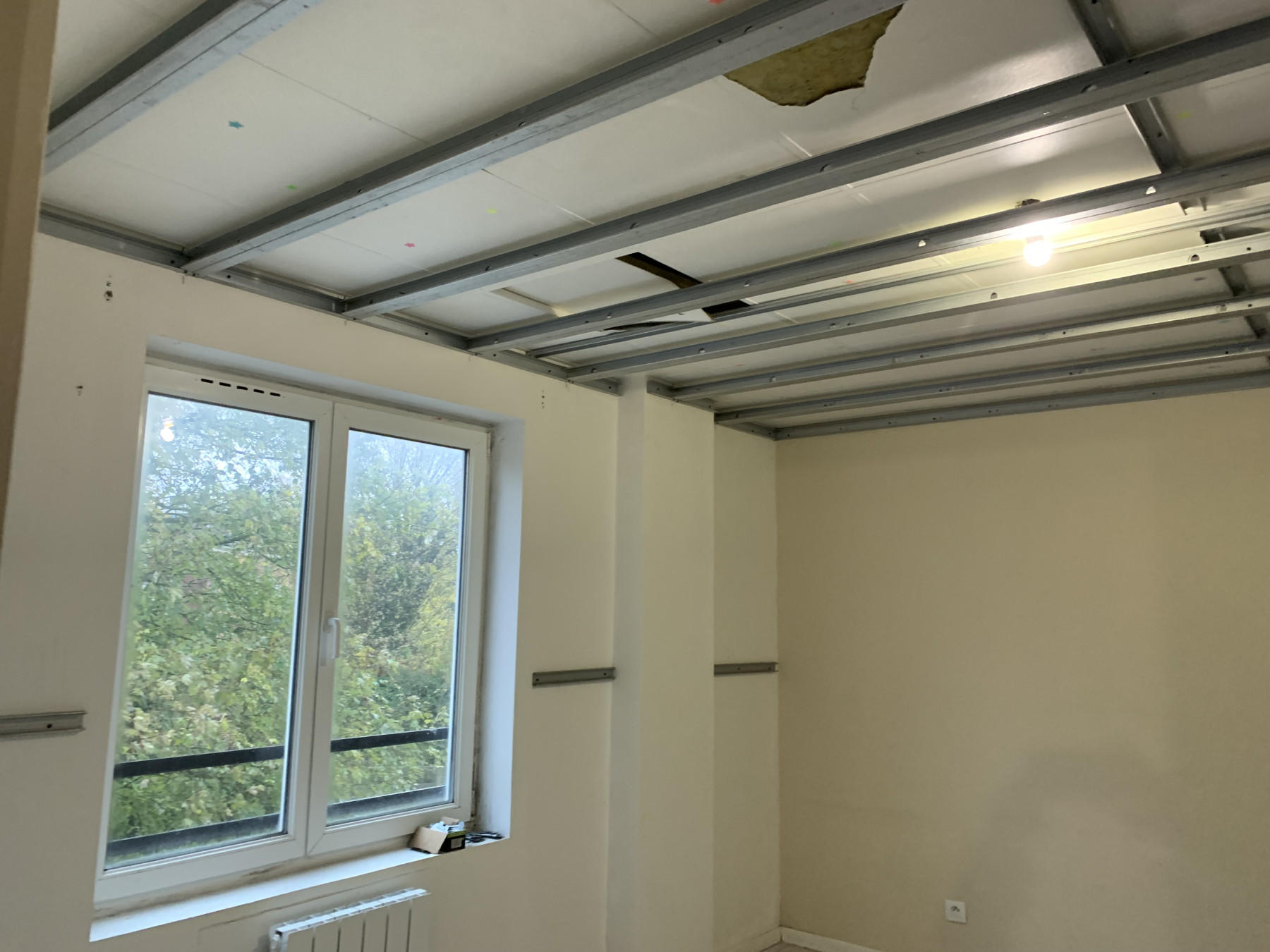 - Isolation des murs en façade, réfection des plafonds, enduits calicots.