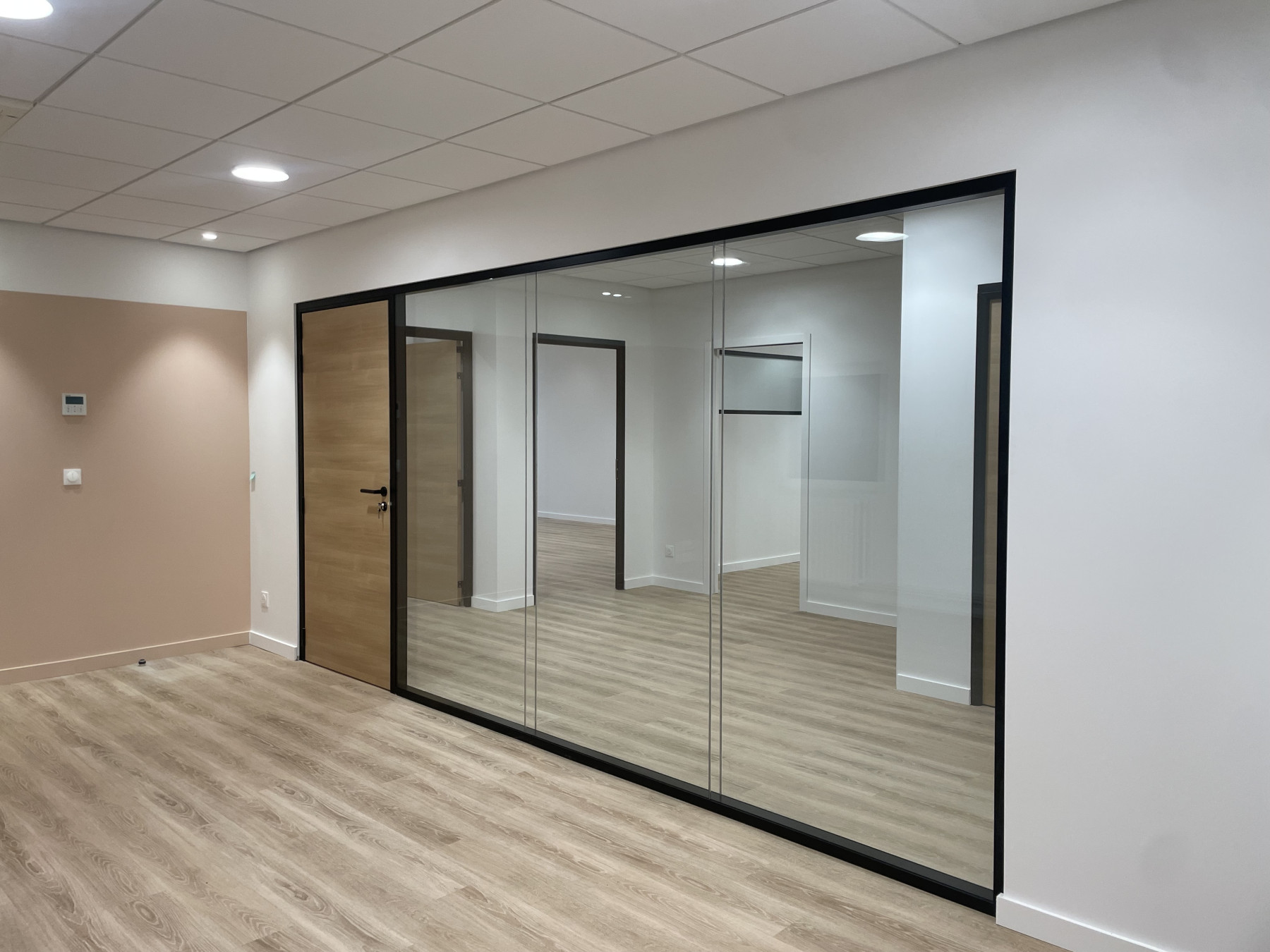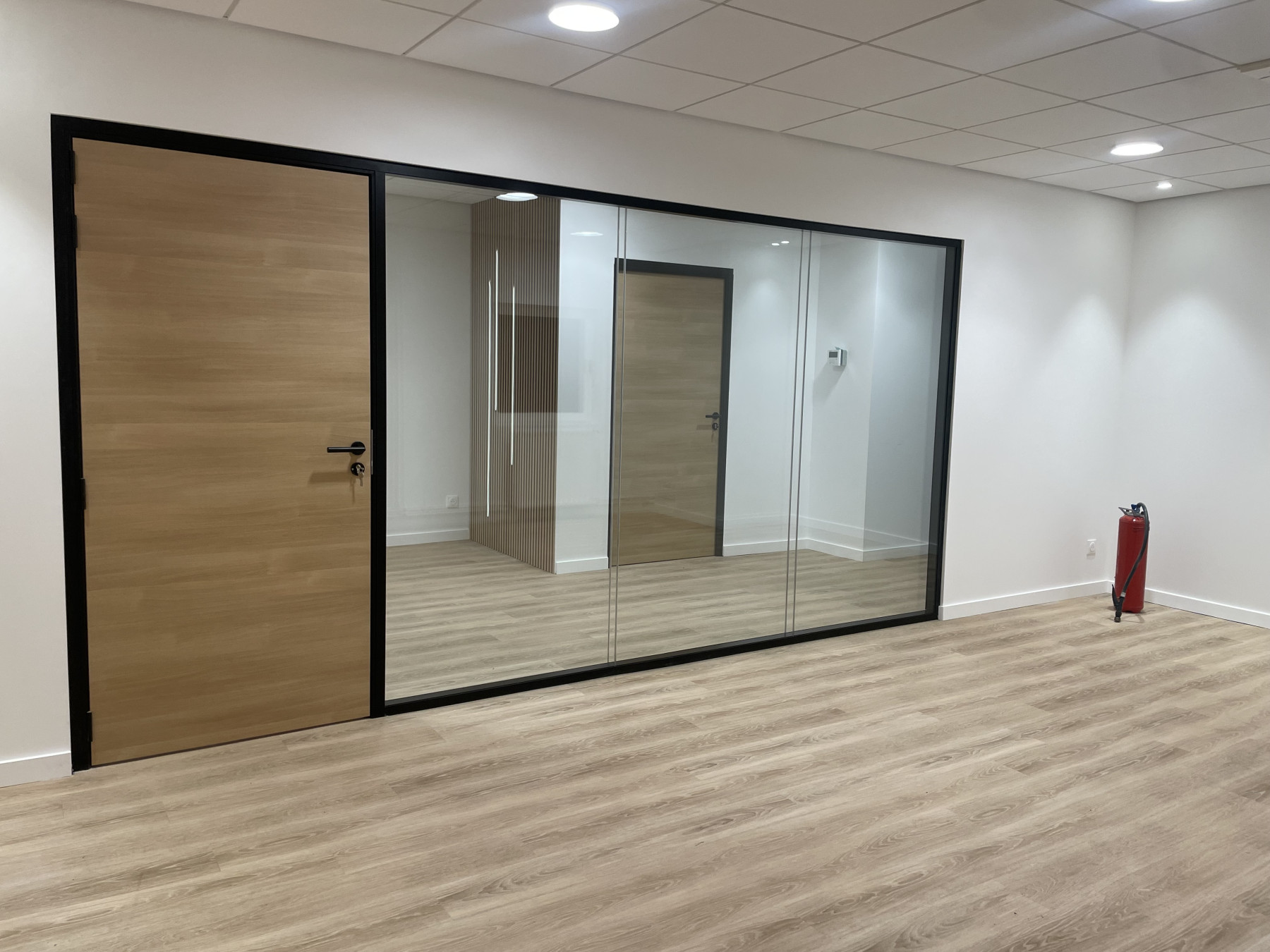 Fourniture et pose de blocs-portes vitrés, cloisons et impostes vitrées, ainsi que de blocs-portes sur châssis à galandage, pour des espaces modernes, lumineux et fonctionnels.
