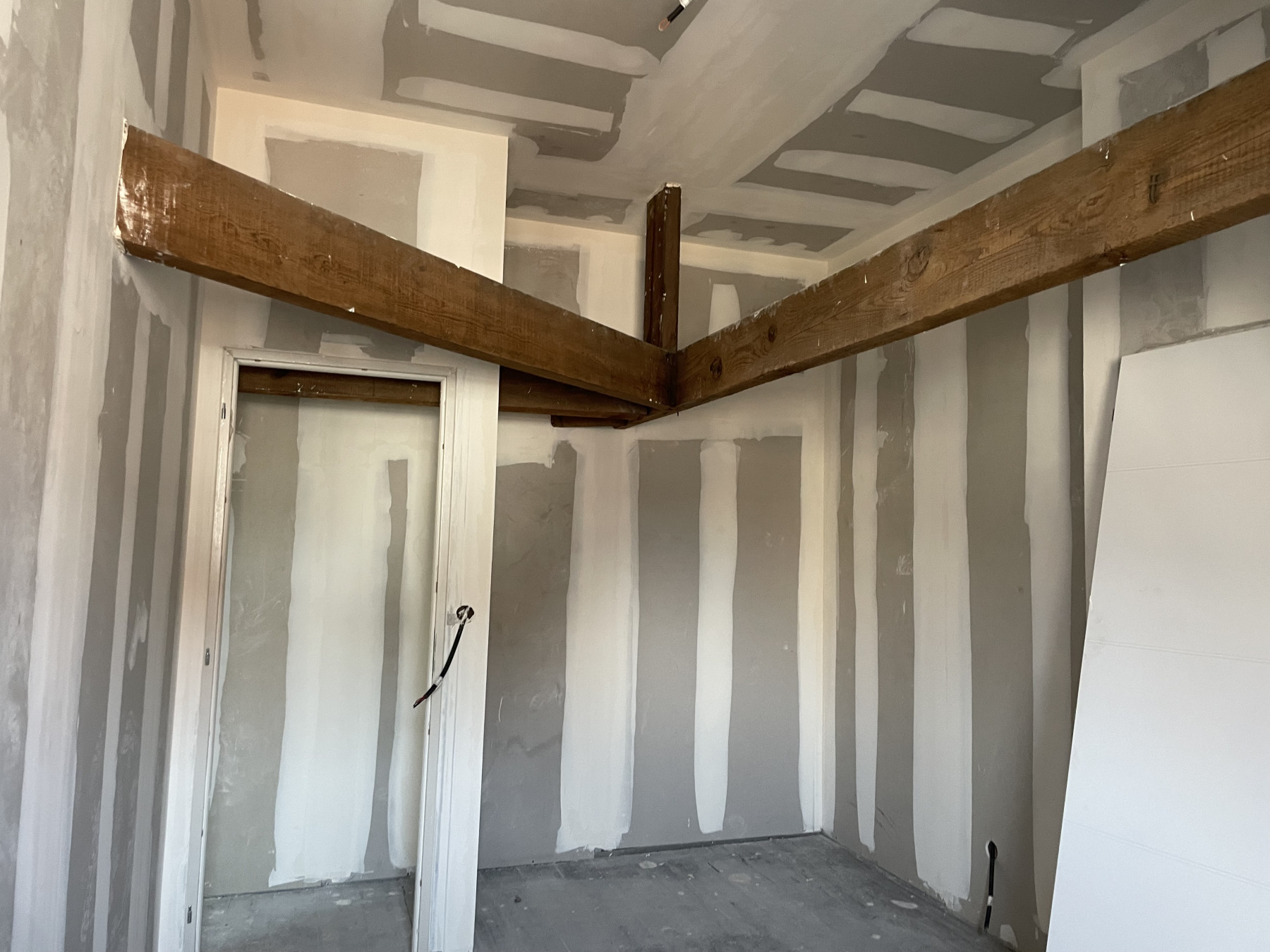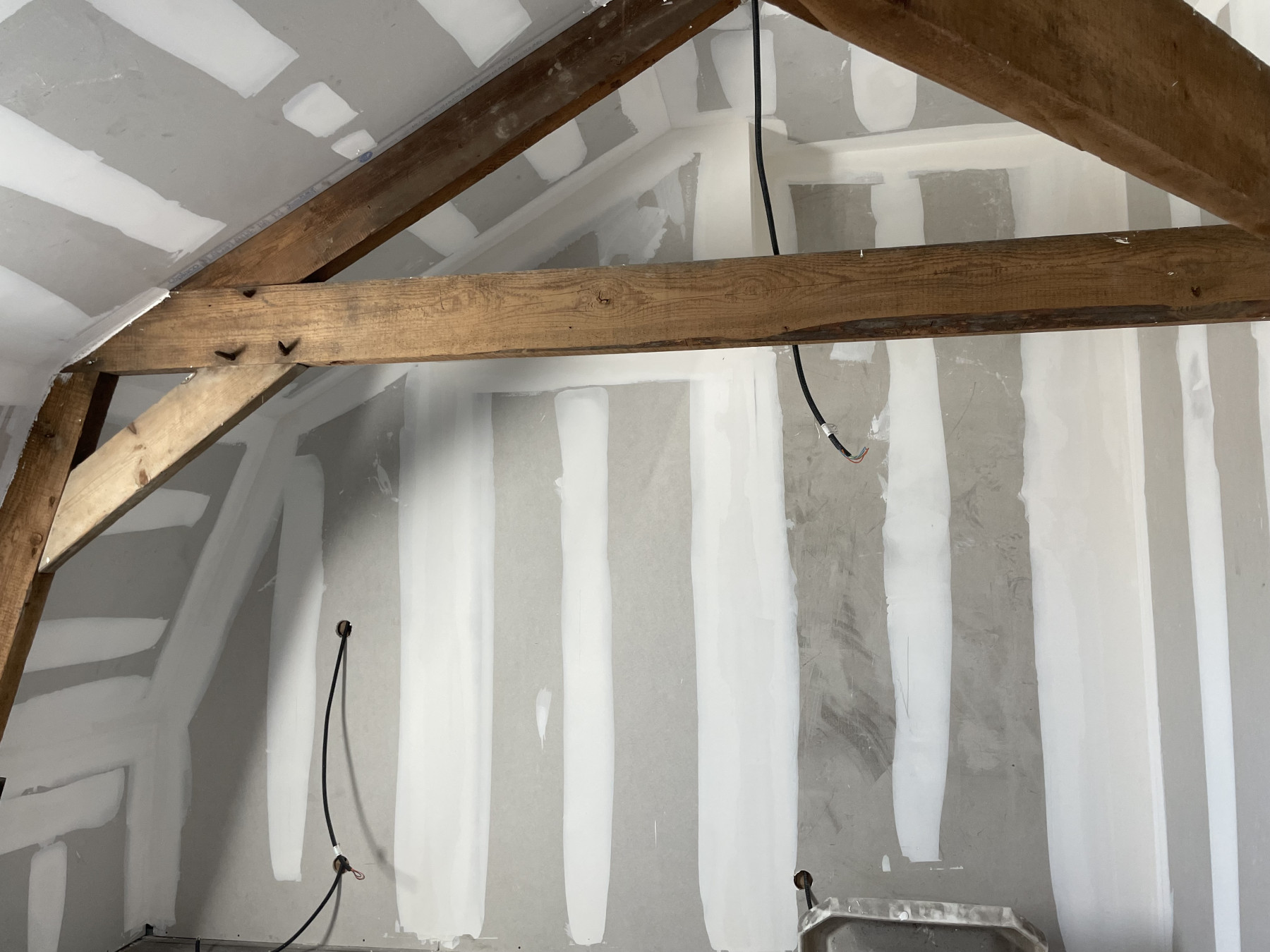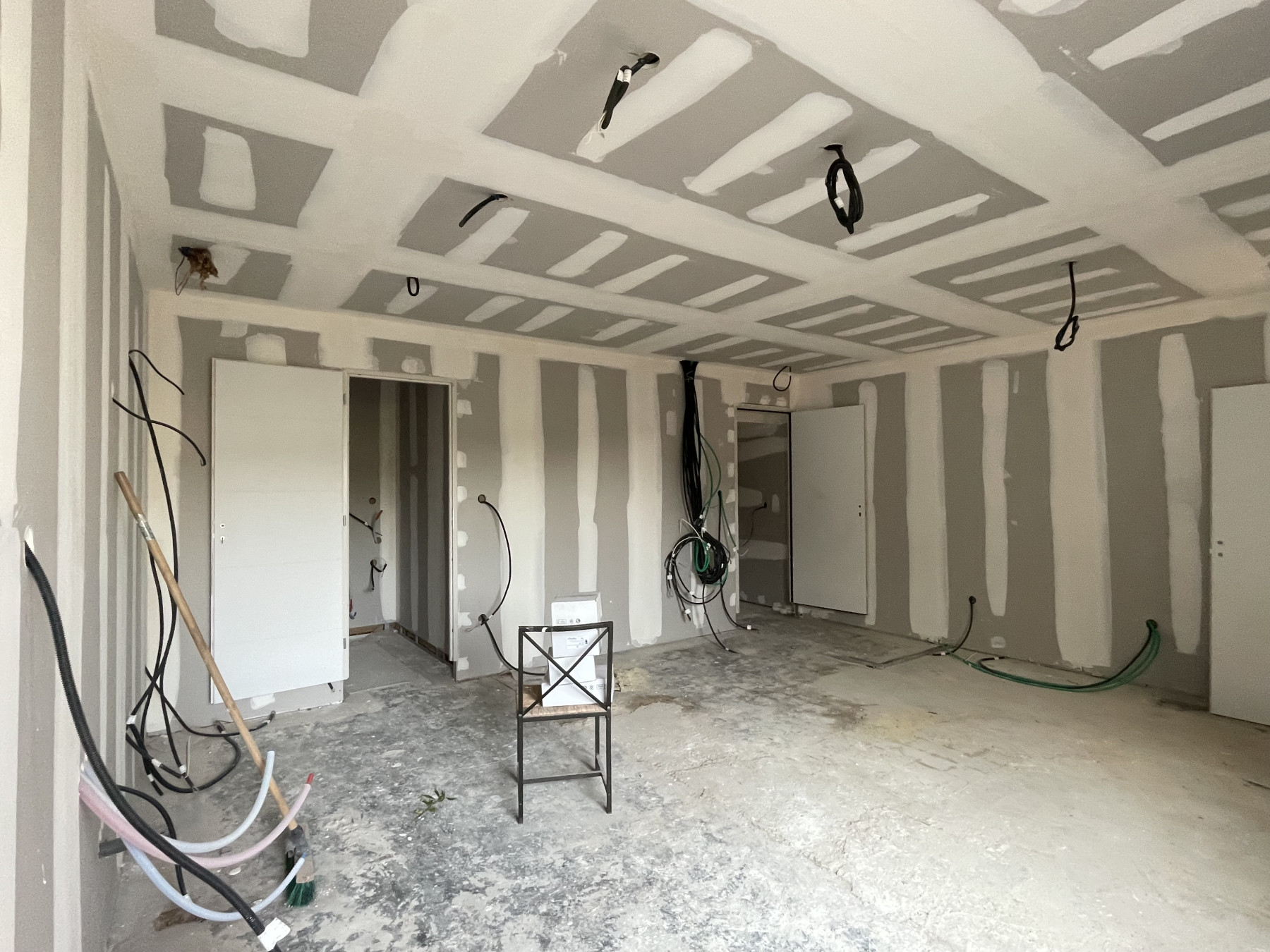Pose de BA13 sur les murs porteurs.