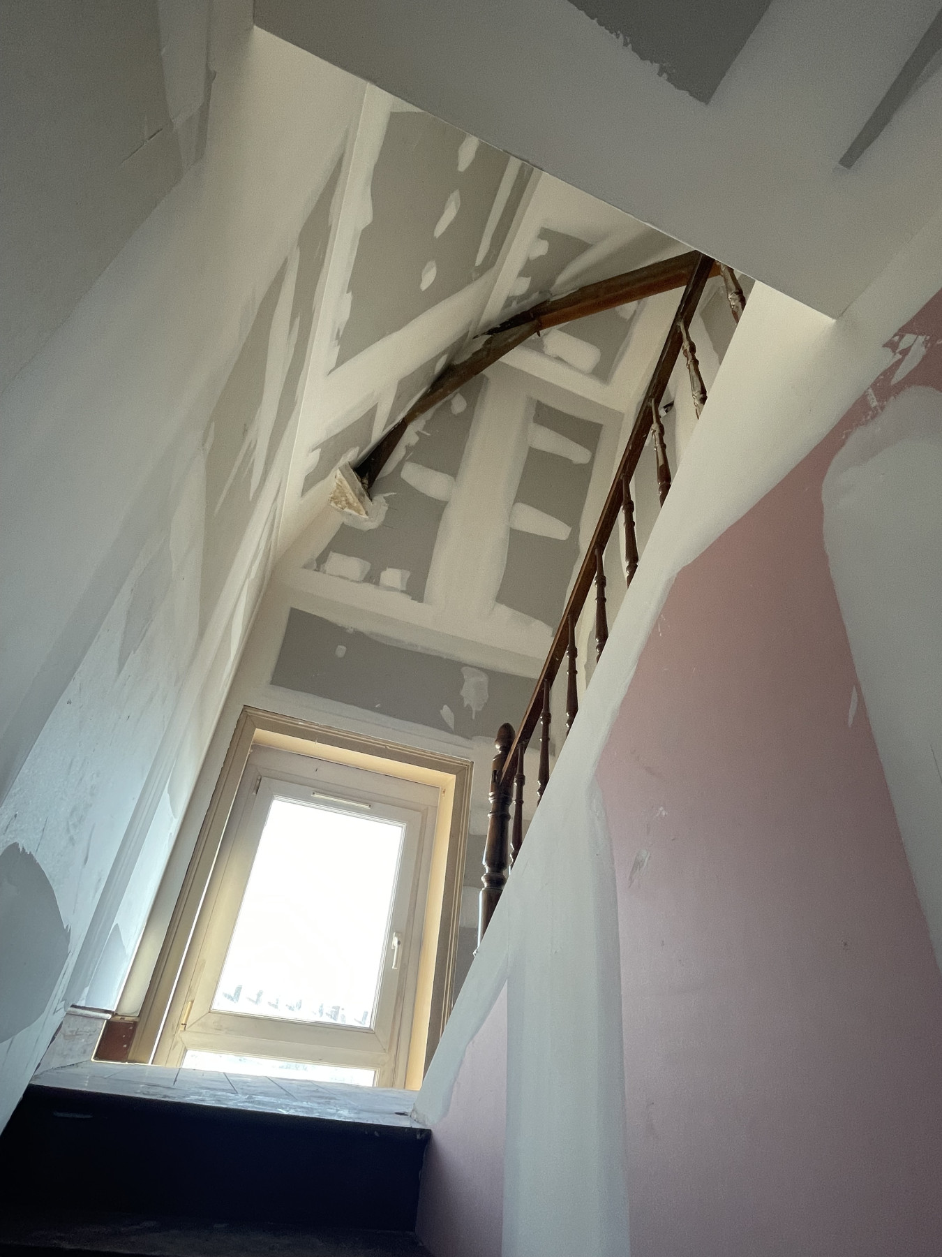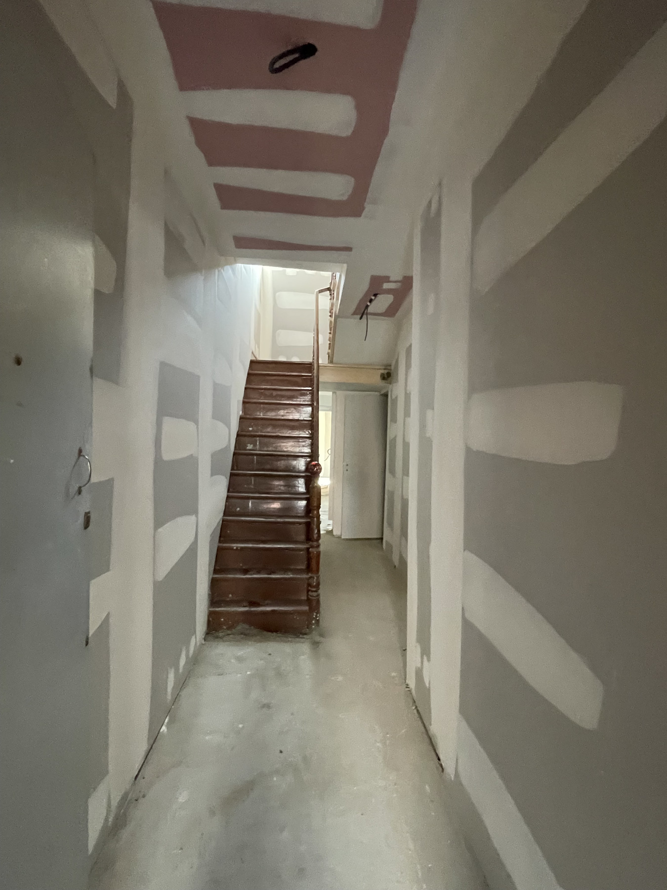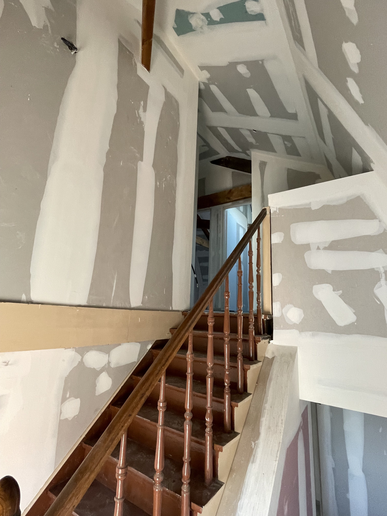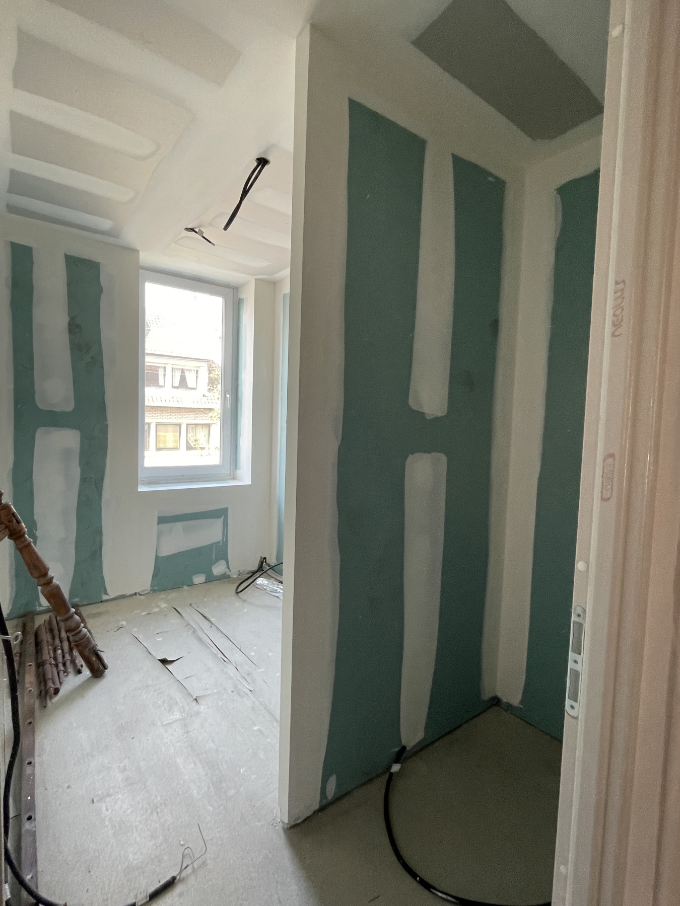 Pose de BA13 sur les murs porteurs.